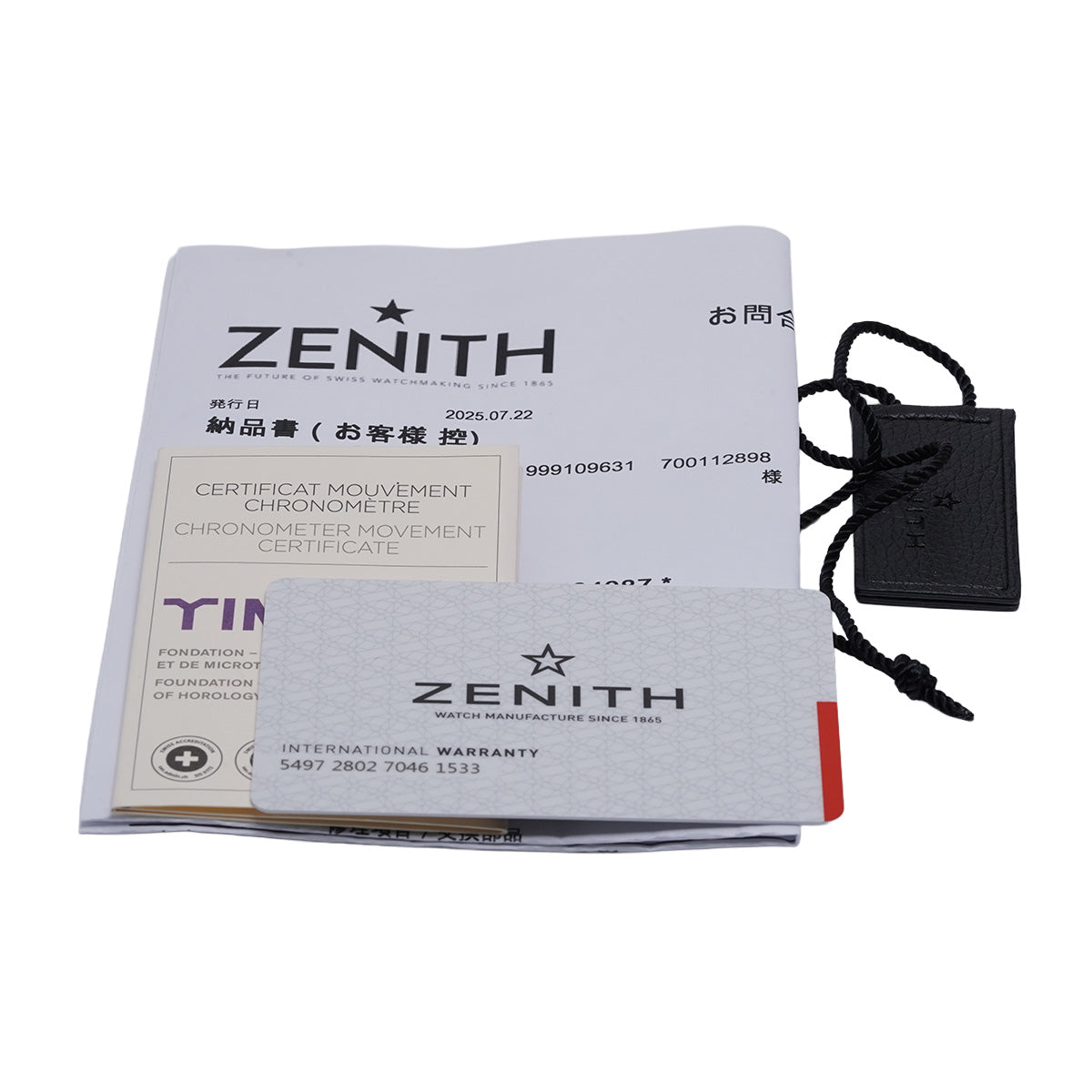 - Manufacturer's warranty (purchased in Japan in June 2025), booklet, chronometer certificate, repair certificate (movement inspection in July 2025)