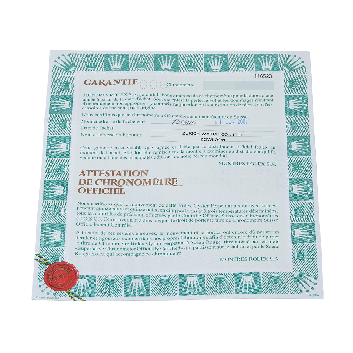- Warranty (purchased overseas in June 2001) Manufacturer's box (damaged) Booklet